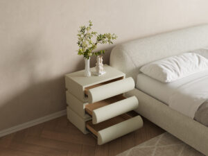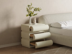 Elevate your bedroom with our sleek nightstand. Featuring a durable slate stone top, three spacious drawers, and modern metal handles, it’s both stylish and practical. Upgrade your bedside storage with this elegant addition.