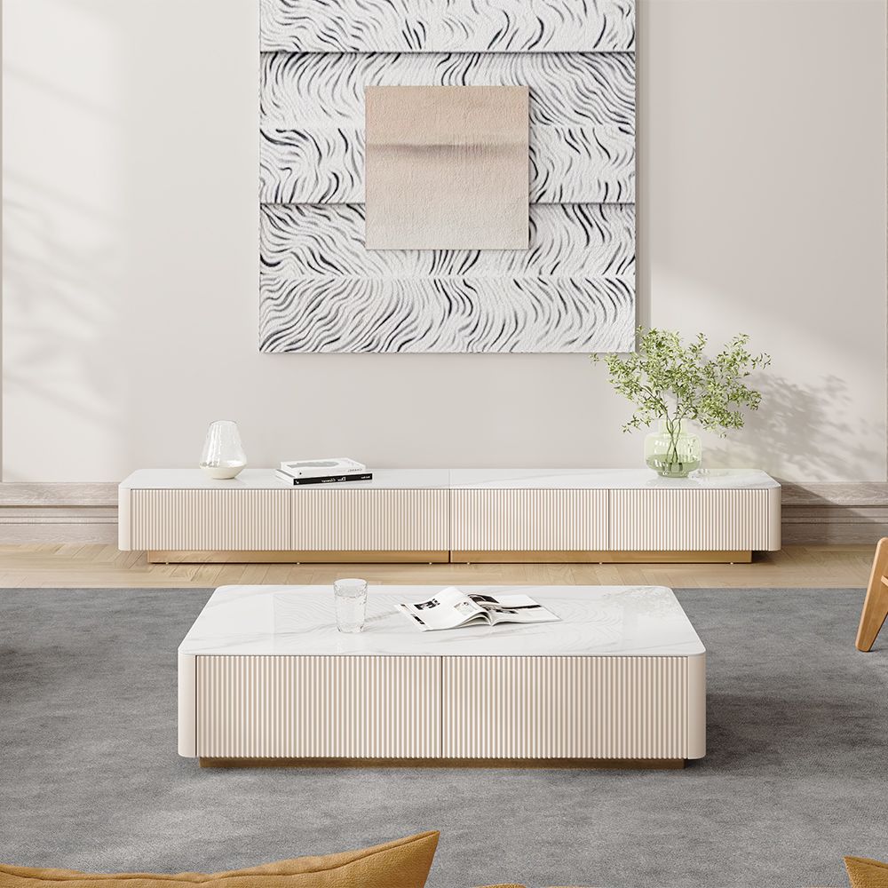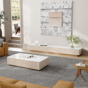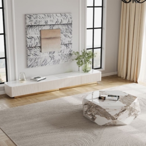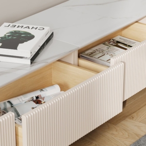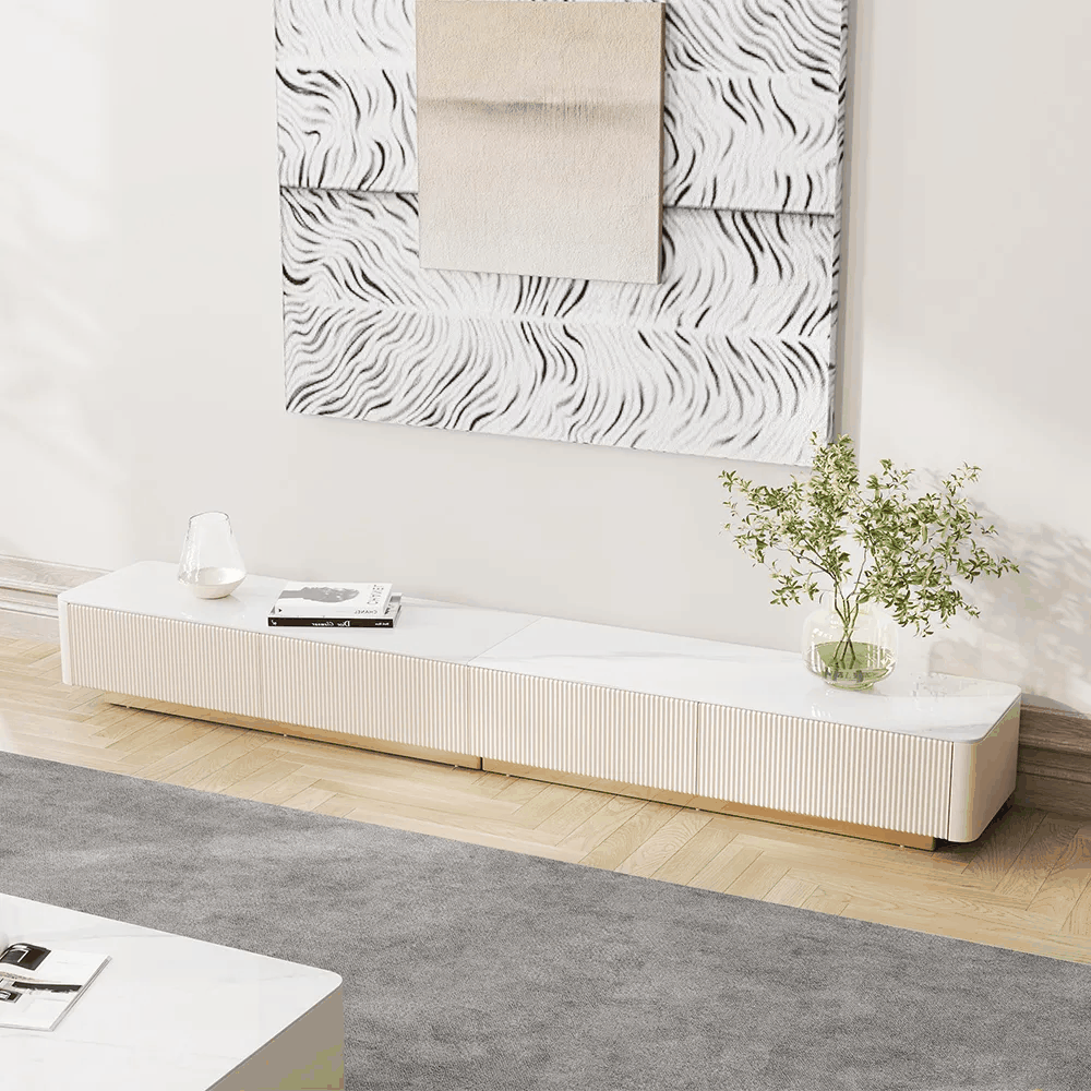 2.4M Extra Long Fluted TV Stand with Glossy Sintered Stone Top