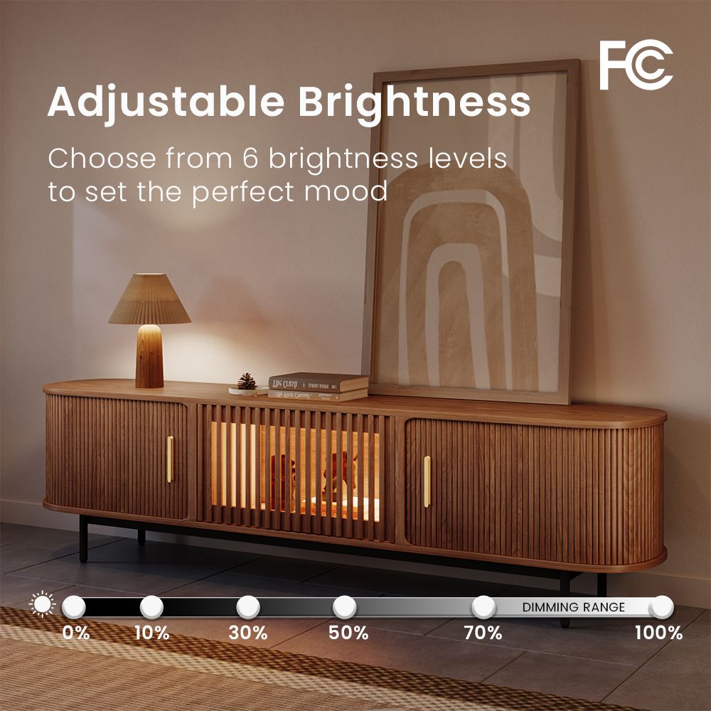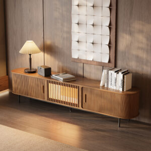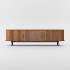 Eos – 200cm Mid-Century Modern Tambour Door TV Stand with LED Lights