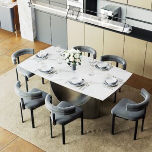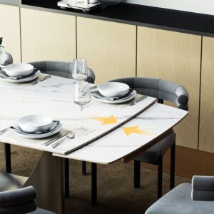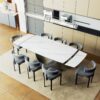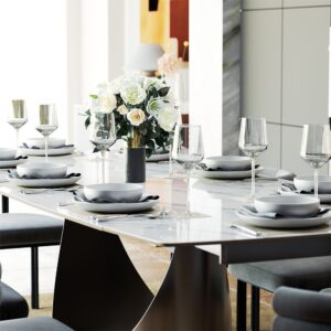 The U dining table is an astounding creation that is well-suited for formal occasions as well as domestic use. As the name implies, the base is designed with U-shaped hollowing out, which has outstanding style. The arc-shaped base is in sharp contrast to the rectangular top, creating an eye-catching geometric sense. Not only is the table aesthetically pleasing but durable and supportive as well. There is enough space at the top for many people to eat and talk comfortably.