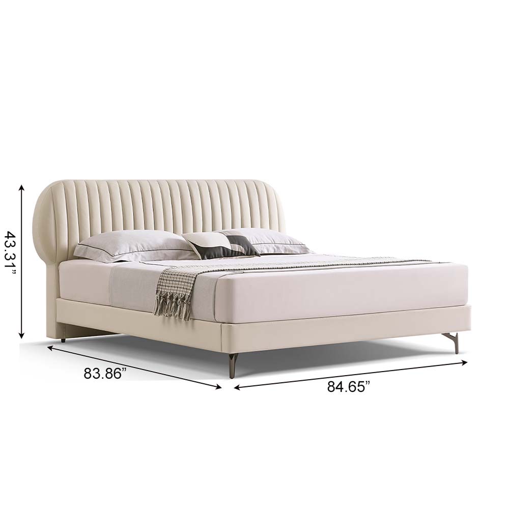 Upgrade your bedroom with this sleek and stylish Queen Size Bed Frame, designed for both comfort and durability. Featuring a genuine leather upholstered headboard, this bed adds a touch of luxury to your space. The solid wood frame ensures long-term stability, while the metal legs provide modern flair and strong support.