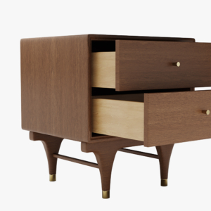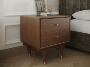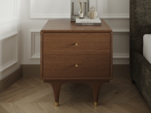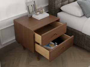 The nightstand is a must for a comfortable bedroom. This bedside table is a classic walnut color, suitable for a variety of home styles. The double drawers with cushioned rails give you ample storage space. The high-leg design makes it look simple yet not lost Elegant, to create a perfect shape for your bedroom.